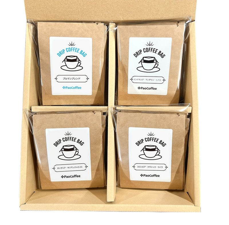 パオコーヒーの新鮮な自家焙煎コーヒー豆をお店で一つ一つ手詰めしているので、とっても新鮮!お手軽なワンドリップコーヒーでも本格的なコーヒーの香りと味わいを楽しめます。器具を揃えるのはちょっと難しい、という方にもお気軽にお試しいただけます。一つずつ個包装になっているので、お出かけの際や、ちょっとした贈り物、おみやげにもオススメです。
