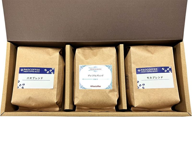 プレミアムブレンド、パオブレンド、モカブレンド(各200g)