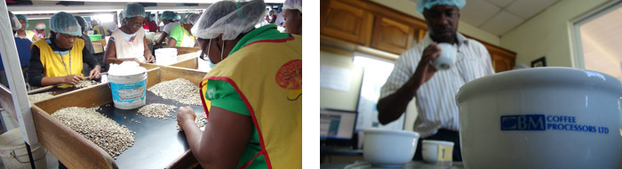 グレード別に丁寧にハンドピックされます。グレードに見合う品質になっているか、カッピングで最終確認。その後、CIB (Coffee Industry Board) へ。