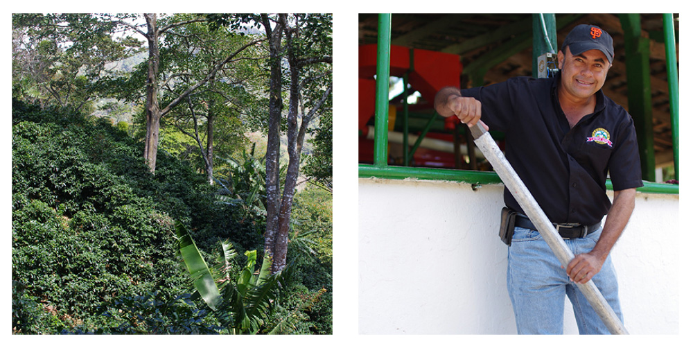 収穫は、ピーク時で約 180 人のピッカーが雇い行われ、4 回に分けて収穫を行います。1 回目は木を掃除する程度、2 回目・3 回目で熟したチェリーを収穫、4 回目で余ったチェリーを取り除きます。スペシャルティコーヒーは2回目と3回目に収穫されたチェリーによってロット形成が行われます。農園内にはインガ、シロの木、柑橘系の木など土壌流出や虫を防ぐ役割も兼ねたシェードツリーを植えています。地元の農学校卒業した農業技師ルイス氏の情熱がたっぷり注がれた美しく上質なコーヒー豆に仕上がっています。