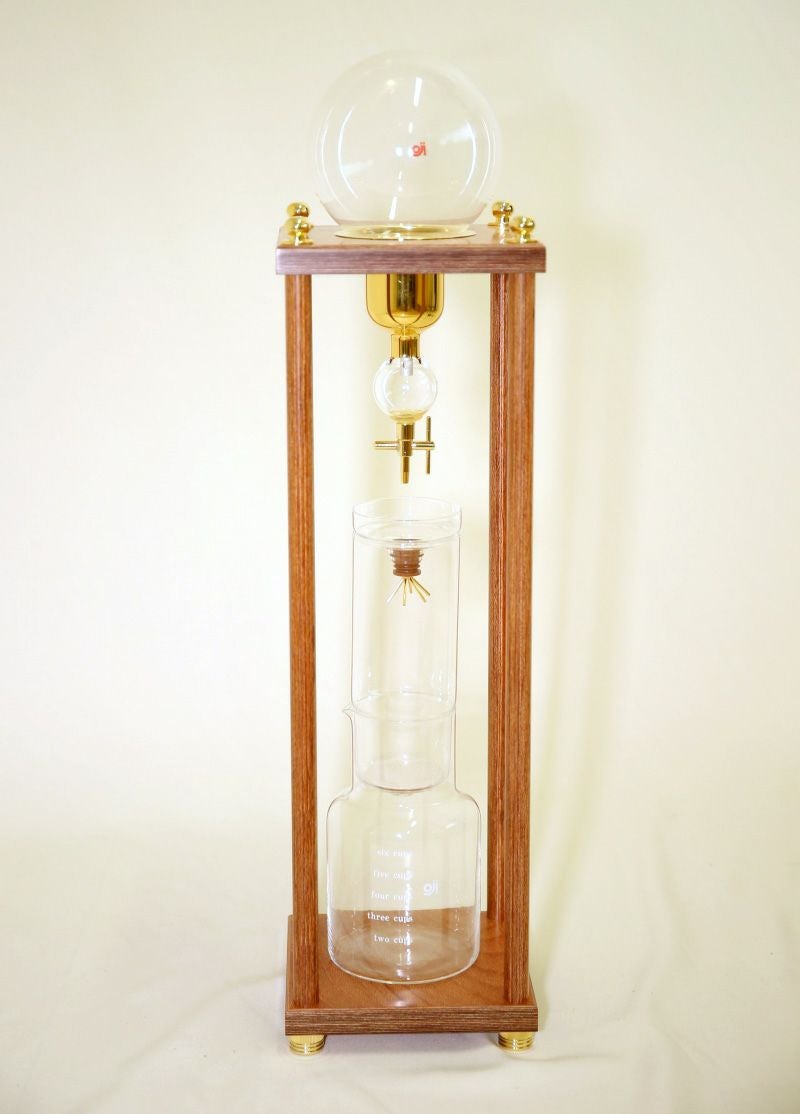木目調と美しいゴールドの装飾が施された贅沢な水出しコーヒー器具