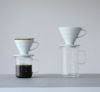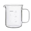 理化学で使用されているビーカーをコーヒーサーバーとしました。幅広く平たいハンドルは、安定して持ちやすく、注ぎやすい形状です。目安メモリが付いているので計量カップとしても使用できます。V60ドリッパーをそのまま乗せられる取っ手付きビーカー。※V60シリーズ「01」サイズ対応のサーバーです。